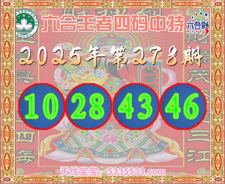 278期:《六合王者》 🥽四码中特🥽【10.28.43.46】开:28准