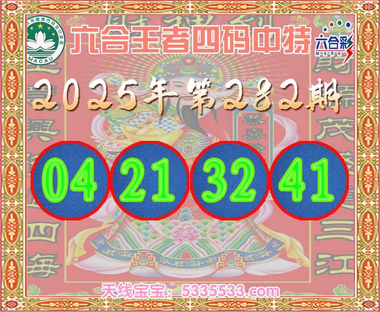 282期:《六合王者》 🥽四码中特🥽【04.21.32.41】开:41准