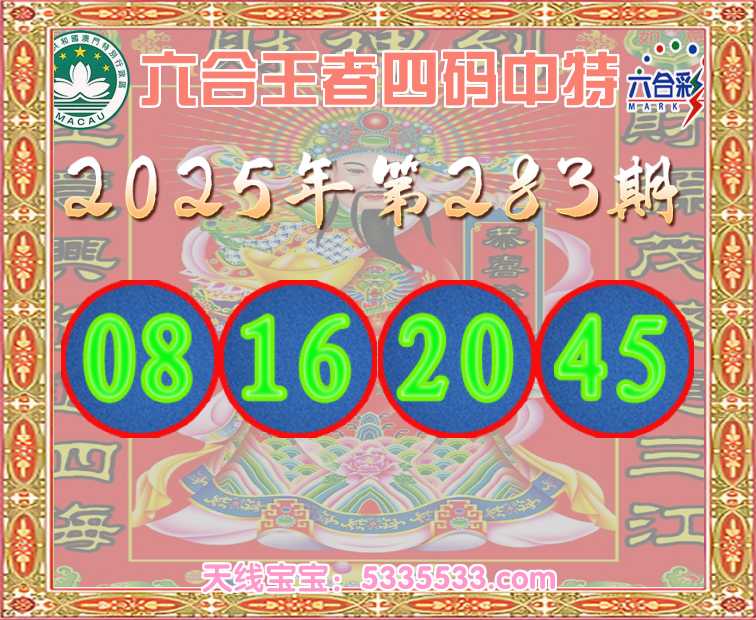 283期:《六合王者》 🥽四码中特🥽【08.16.20.45】开:45准