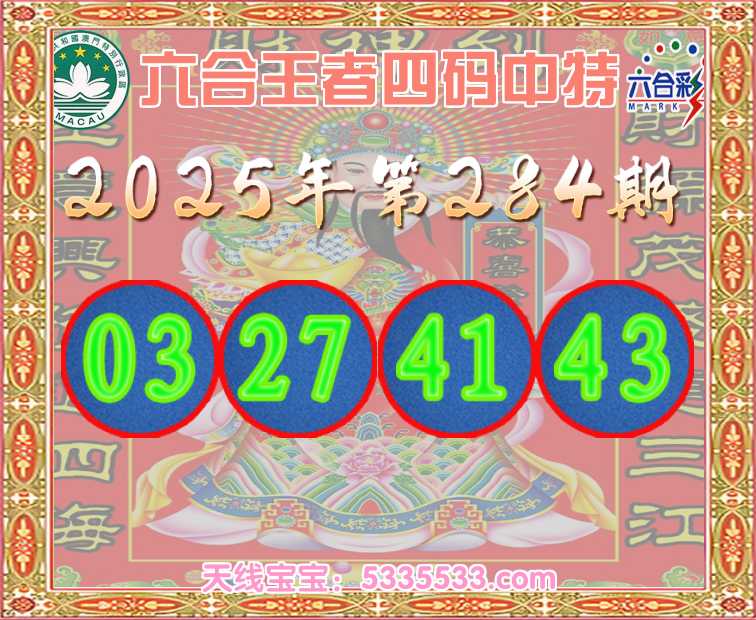 284期:《六合王者》 🥽四码中特🥽【03.27.41.43】开:41准