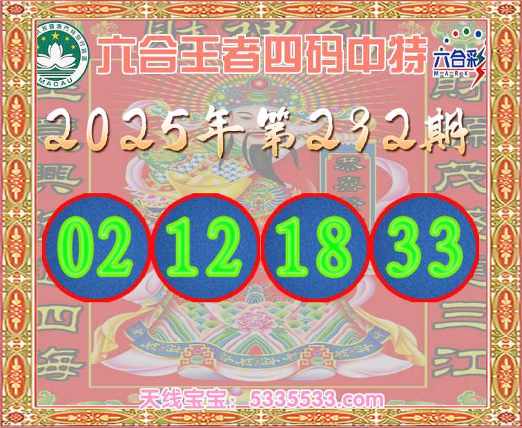 292期:《六合王者》 🥽四码中特🥽【02.12.18.33】开:02准