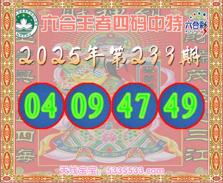 299期:《六合王者》 🥽四码中特🥽【04.09.47.49】开:49准