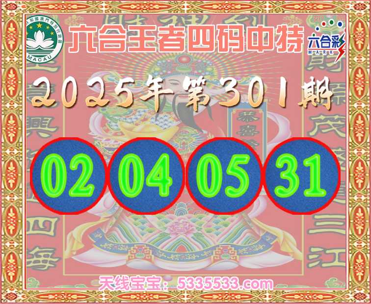 301期:《六合王者》 🥽四码中特🥽【02.04.05.31】开:05准