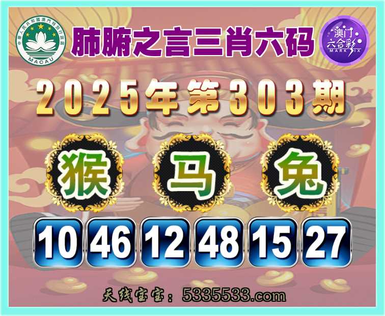 303期: 👘《肺腑之言》 👘三肖六码👘【猴马兔】开:兔15准