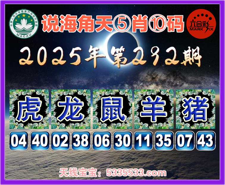 292期:〖说海角天〗 🎪⑤肖⑩码🎪【虎龙鼠羊猪】开:龙02准