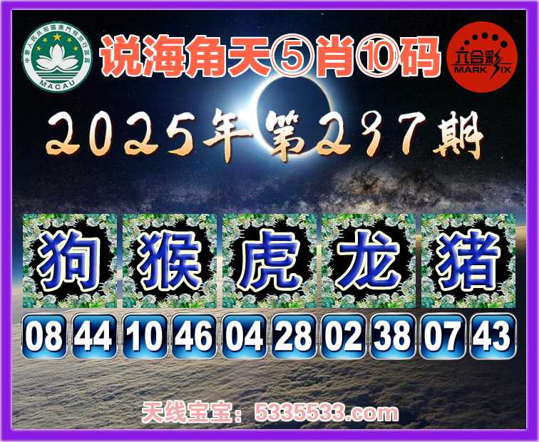 297期:〖说海角天〗 🎪⑤肖⑩码🎪【狗猴虎龙猪】开:狗44准