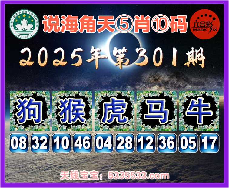 301期:〖说海角天〗 🎪⑤肖⑩码🎪【狗猴虎马牛】开:牛05准
