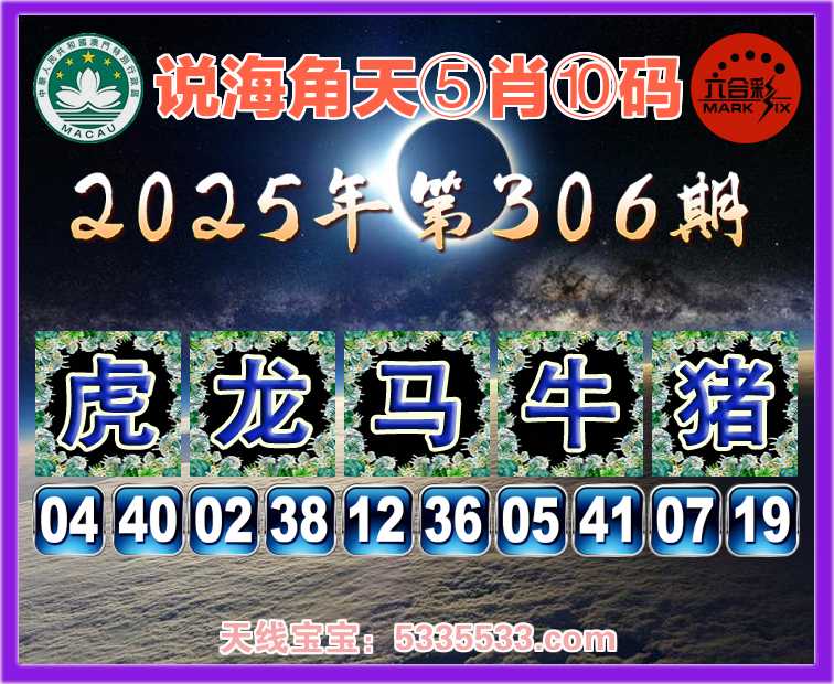 306期:〖说海角天〗 🎪⑤肖⑩码🎪【虎龙马牛猪】开:00准