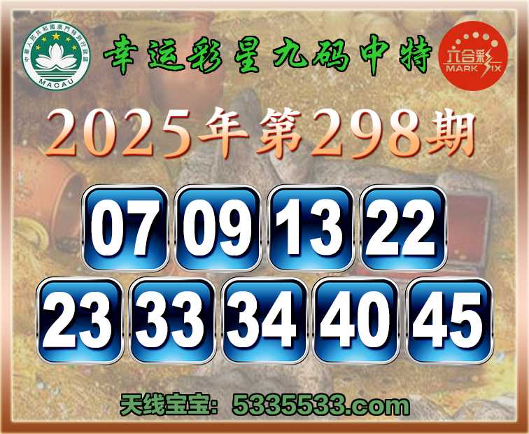298期:〖幸运彩星〗 🥖九码中特🥖开:23准