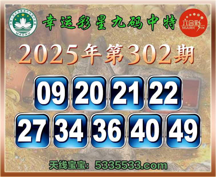 302期:〖幸运彩星〗 🥖九码中特🥖开:22准