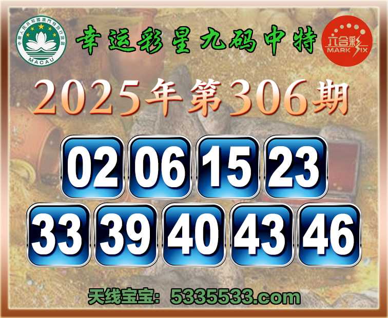 306期:〖幸运彩星〗 🥖九码中特🥖开:00准