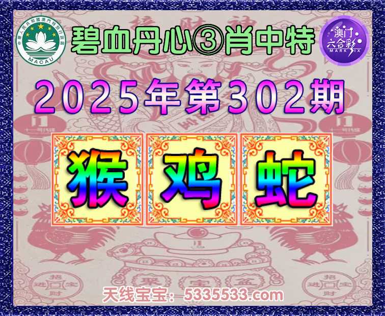 302期:〖碧血丹心〗 🥠③肖中特🥠【猴.鸡.蛇】开:猴22准