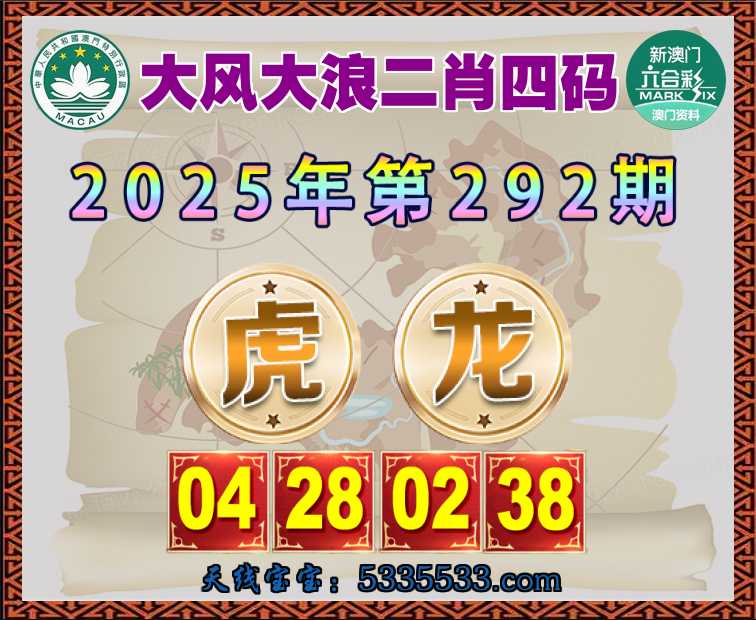 292期:【大风大浪】 👛二肖四码👛【虎龙】【04.28.02.38】开:龙02准