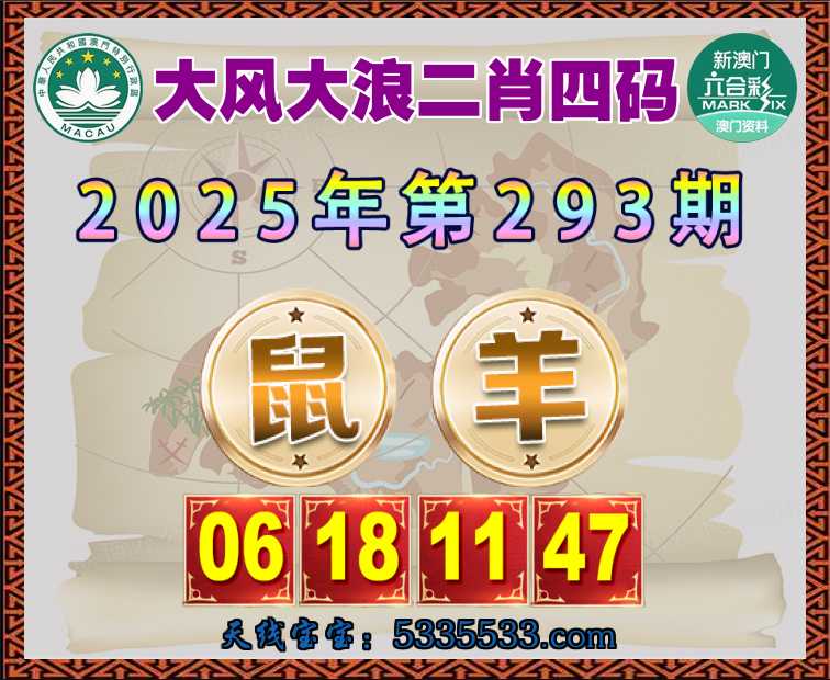 293期:【大风大浪】 👛二肖四码👛【鼠羊】【06.18.11.47】开:羊47准