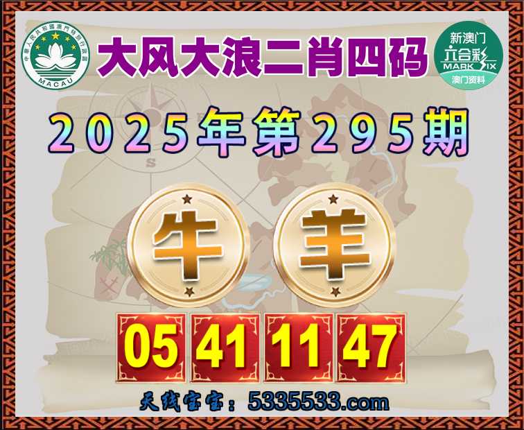295期:【大风大浪】 👛二肖四码👛【牛羊】【05.41.11.47】开:牛05准