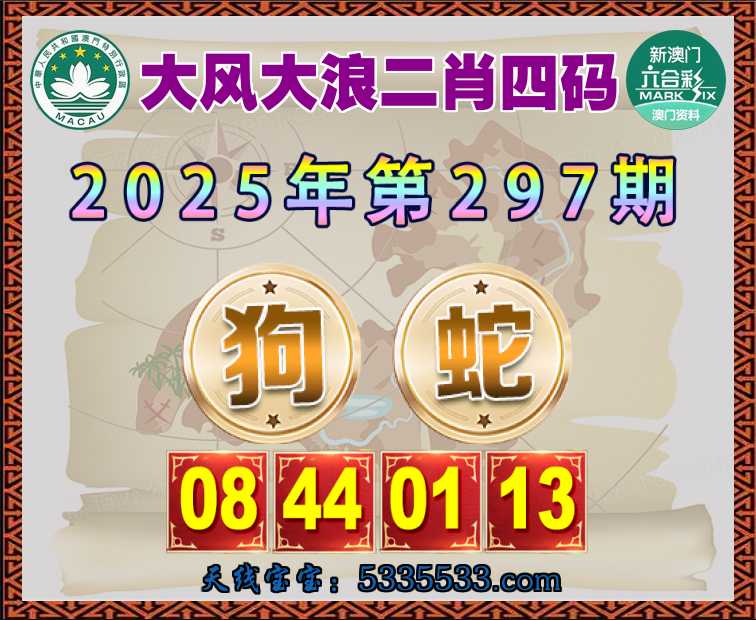 297期:【大风大浪】 👛二肖四码👛【狗蛇】【08.44.01.13】开:狗44准