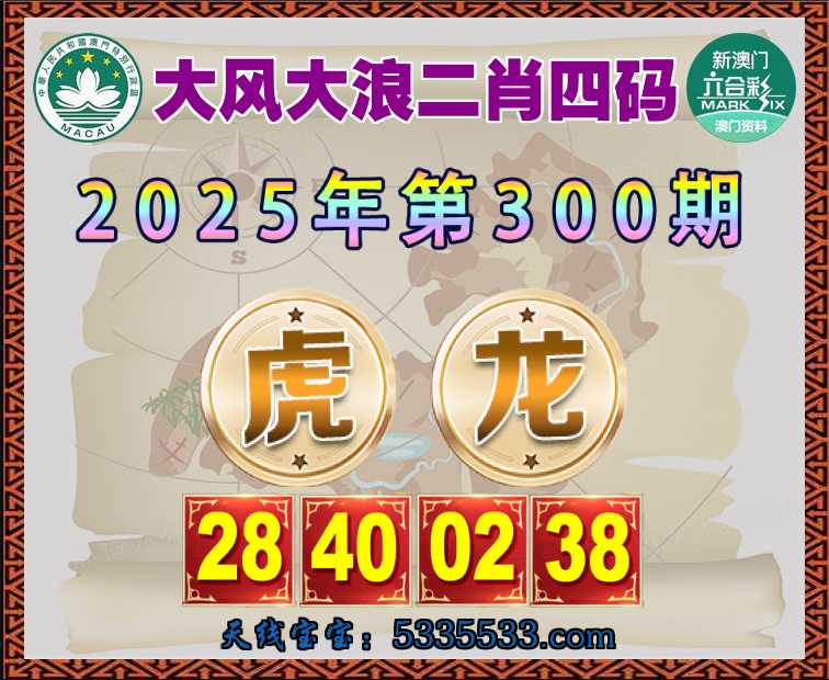 300期:【大风大浪】 👛二肖四码👛【虎龙】【28.40.02.38】开:虎40准