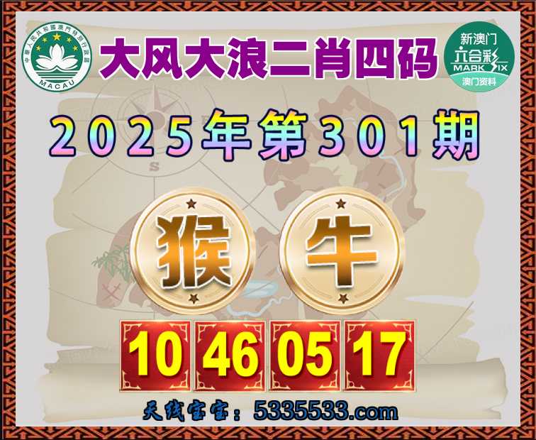 301期:【大风大浪】 👛二肖四码👛【猴牛】【10.46.05.17】开:牛05准