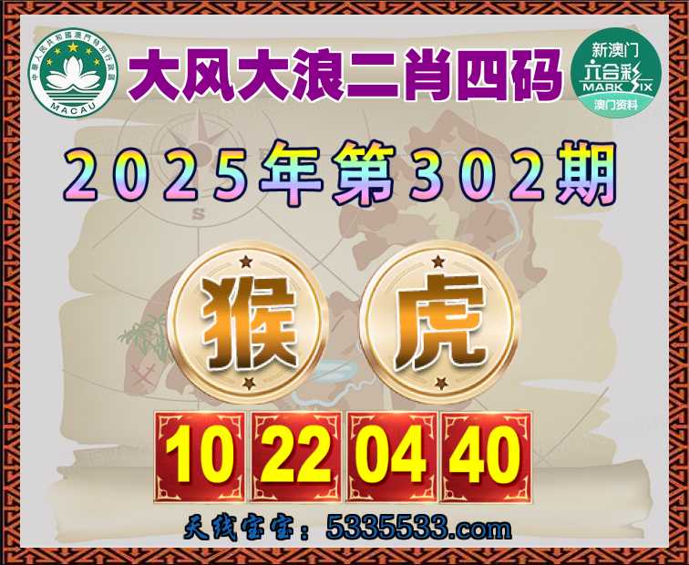 302期:【大风大浪】 👛二肖四码👛【猴虎】【10.22.04.40】开:猴22准