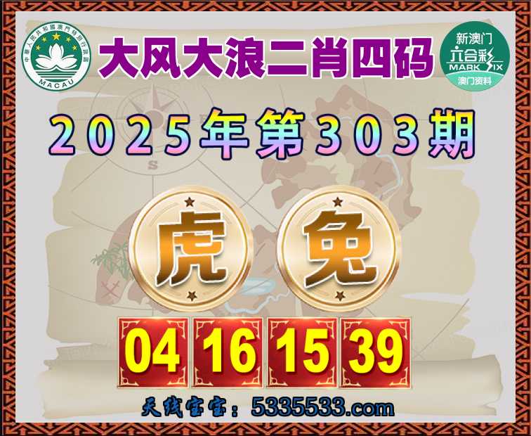 303期:【大风大浪】 👛二肖四码👛【虎兔】【04.16.15.39】开:兔15准
