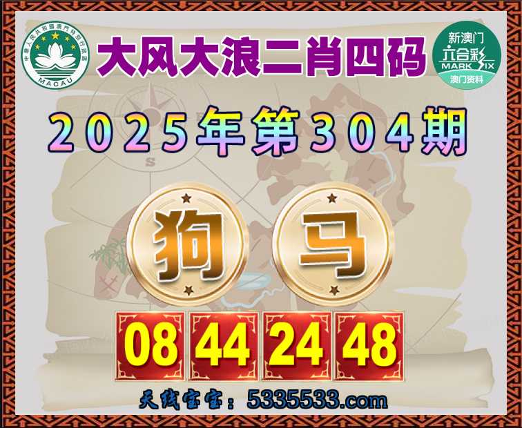 304期:【大风大浪】 👛二肖四码👛【狗马】【08.44.24.48】开:马48准