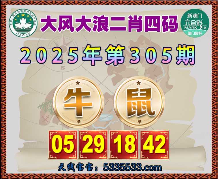305期:【大风大浪】 👛二肖四码👛【牛鼠】【05.29.18.42】开:鼠42准