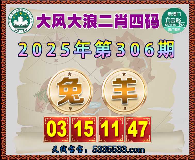 306期:【大风大浪】 👛二肖四码👛【兔羊】【03.15.11.47】开:00准