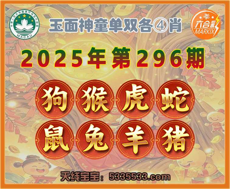 296期:『玉面神童』 🧣单双各④肖🧣开:猴22准
