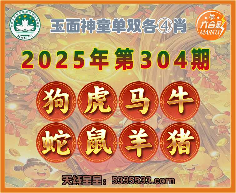 304期:『玉面神童』 🧣单双各④肖🧣开:马48准
