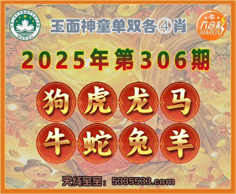 306期:『玉面神童』 🧣单双各④肖🧣开:00准