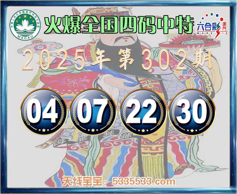 302期:【火爆全国】 🍅四码中特🍅【04.07.22.30】开:22准